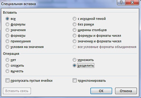 Как разделить одновременно несколько ячеек на 1000 в Excel