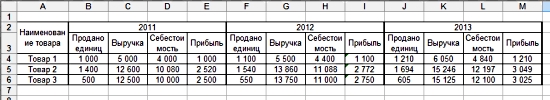 Скрываем и открываем несколько строк или столбцов. Группировка в ExcelПредположим, что у нас есть таблица следующего вида, содержащая данные за ряд лет.