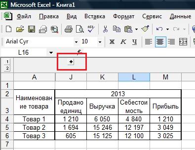 Как видим, нужные данные скрыты, а над таблицей появился значок "+", при нажатии на который мы вернемся к первоначальному виду таблицы. Таким образом, функция группировки данных помогает нам скрывать и возвращать нужные данные одним движением руки. Аналогично можно сгруппировать и данные по строкам.