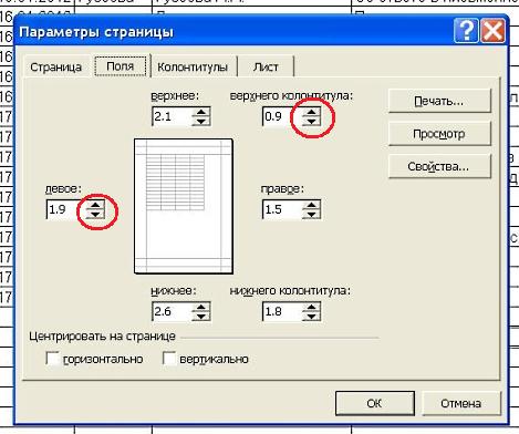 Регулировать расположение информации на странице можно с помощью закладки «Поля». Здесь можно изменять поля страницы с помощью стрелочек (обведены кружками), выбирая нужные цифры, а также центрировать документ на странице, отметив поля «горизонтально» и «вертикально». О том, как «перетягивать» поля, читайте в разделе "Предварительный просмотр страницы". Если после прочтения статьи у Вас остались вопросы или вы хотели бы видеть в данном разделе определенные темы напишите мне письмо с пометкой "эксель" по адресу: ngt@inbox.ru Назад    Вверх страницы