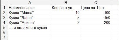 Любой прайс-лист - это прежде всего таблица, наполненная данными.