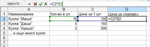 = КОЛИЧЕСТВО ТОВАРОВ В УПАКОВКЕ * ЦЕНА ТОВАРА ENTER
