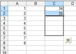 Ну, а теперь вручную нумеруем первую и вторую строки, после чего активизируем обе ячейки и ставим курсор на нижний левый угол второй ячейки. Должен появиться крестик. Нажимаем на этот крестик левой кнопкой мыши и, удерживая ее, тянем до конца списка.