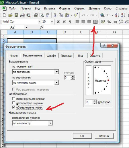 А дальше действуем следующим образом: активизируем объединяемые ячейки и нажимаем на иконку "Объединить и поместить в центре".