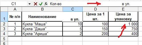 Итак, для того, чтобы получить цену за упаковку, нам нужно перемножить "количество товаров в упаковке" и "цену товара".