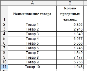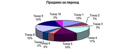 Не секрет, что лучше всего с этой задачей можно справиться при помощи графиков и Этим мы и займемся. В предыдущем уроке мы научились строить графики. А сейчас займемся построением диаграммы, для того, чтобы наглядно показать, какую долю составляют продажи отдельных товаров в общей сумме. Возьмем, к примеру, таблицу со следующими данными: