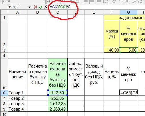Как видим, все формулы ссылаются на ячейку с процентом менеджеров, что нам и было нужно.