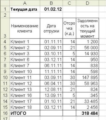 Начнем с того, что составим либо сформируем в бухгалтерской программе список должников следующего вида: