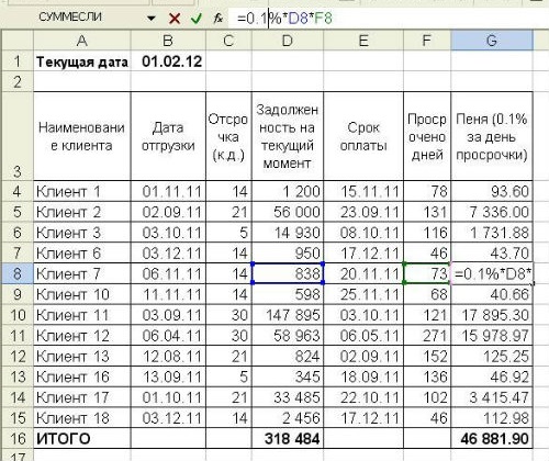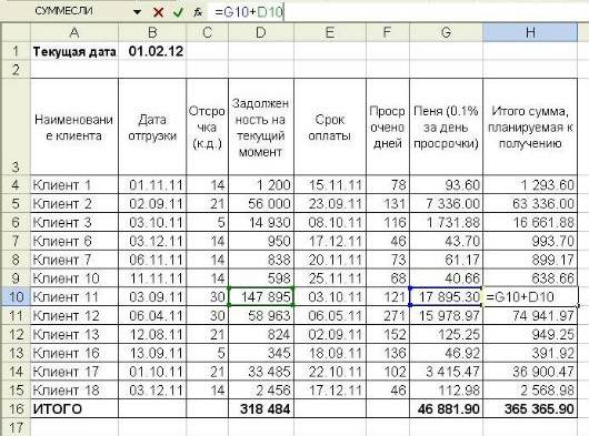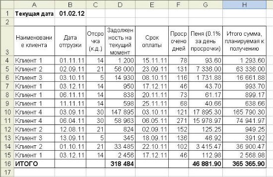 Сегодня мы составим список должников, выявим тех, на кого есть смысл подавать в суд и посчитаем сумму, на которую мы можем рассчитывать в случае положительного исхода, с учетом пени за просроченный период.
