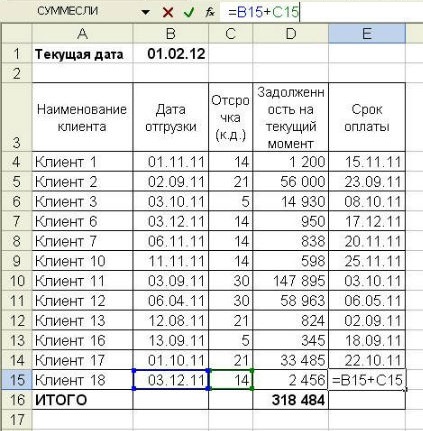 Используя данные о дате отгрузки, определим крайний срок оплаты исходя из предоставленной отсрочки. Прибавим количество дней отсрочки к дате отгрузки.