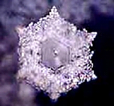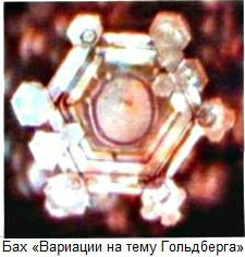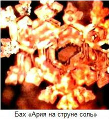 ...в то время как кристаллы загрязненной городской воды или какой-либо иной, физически и химически отравленной воды имеют тусклый вид, очень примитивную форму либо вообще не имеют структуры. Кристалл дистиллированной воды, не подвергнутый никакому воздействию