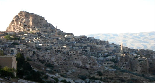 Относительно мягкие горные породы Каппадокии легко подвергались механической обработке, что позволяло людям и в древности, и в наши дни строить свои жилища прямо внутри скал. Современный город